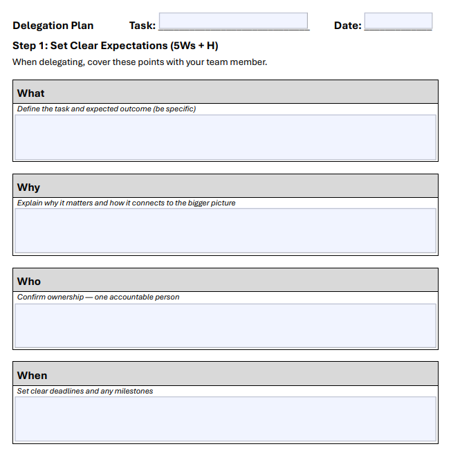 So stop winging it. Download the Delegation Planner. Use it. Share it. Make it a regular part of your leadership toolkit.
